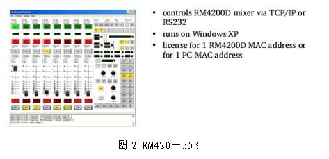 RM4200D數(shù)字調(diào)音臺(tái)是德國(guó)DHD公司的第三代產(chǎn)品,是針對(duì)數(shù)字化、網(wǎng)絡(luò)化的發(fā)展要求而研發(fā)的產(chǎn)品。其設(shè)計(jì)原理是:硬件系統(tǒng)僅僅是為軟件系統(tǒng)提供一個(gè)穩(wěn)定而強(qiáng)大的工作平臺(tái),它將實(shí)現(xiàn)軟件所特定的全部功能。