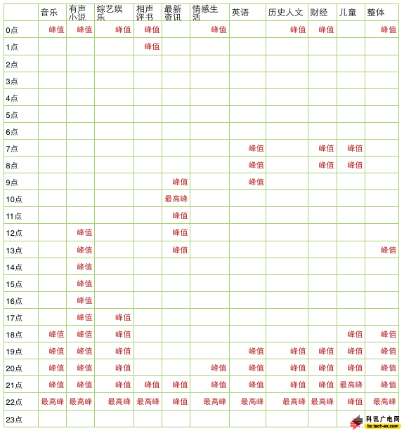 很明顯的一點是,早上的音頻內(nèi)容偏短,而晚上這個高峰的內(nèi)容偏長。
