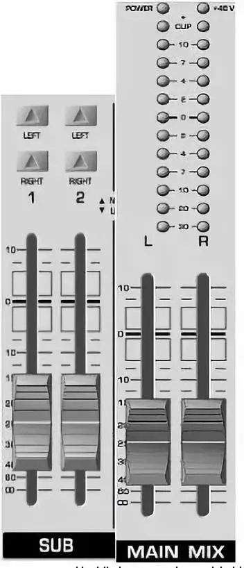 用此推桿可以調節(jié)編組和主混音的輸出音量。