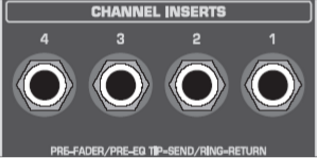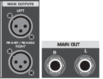 MAIN輸出端用來輸導MAIN MIX信號,配有平衡式XLR 插孔,其額定電平為 +4dBu,同時還有平衡式6.3mm插孔,同樣供主總和信號輸出使用(1622FX: 這里插口輸出端位于正面面板上,為不平衡式)。