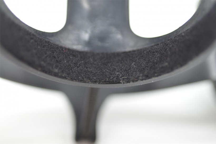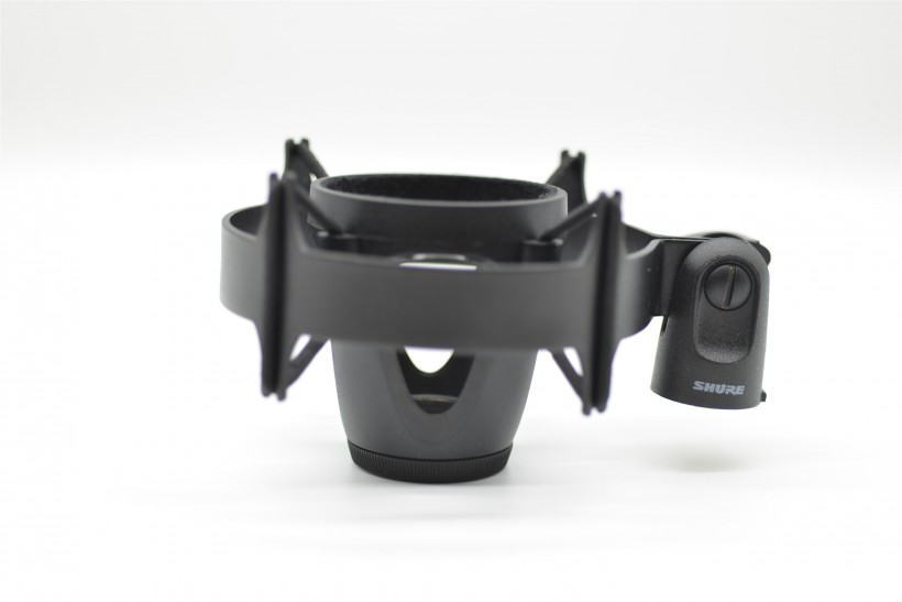 減震架的做工還是不錯的。在與話筒架的接口處還印著Shure logo。話筒與減震架是通過底部旋轉口來進行固定,這也為話筒倒置提供了可能。有一個小小細節(jié)是,話筒與減震架的接觸位置內部還安裝了一圈的墊片,為了防止減震架與話筒摩擦而傷害到話筒,可謂非常有心。