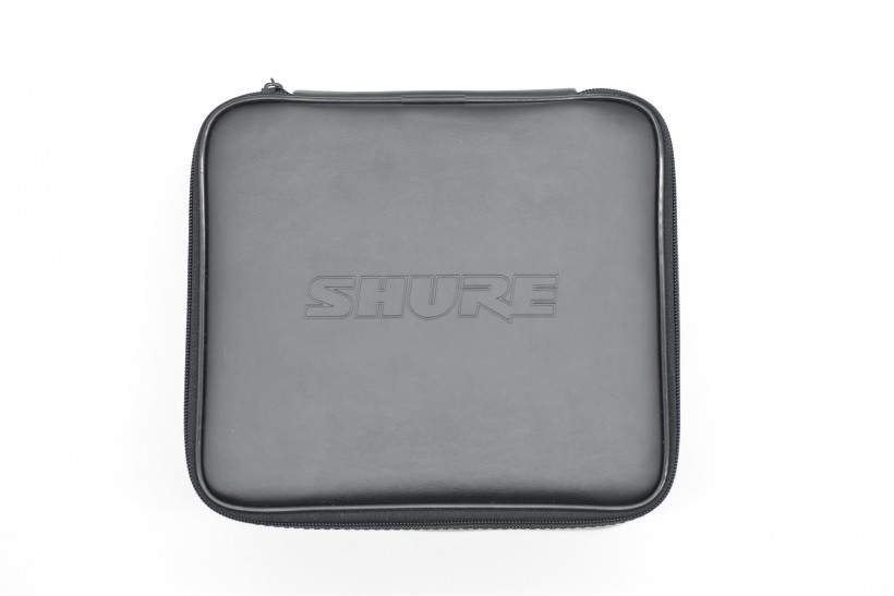 正面為Shure的logo,由拉鏈打開,箱體內部的外層為一層有一定厚度的海綿,內部由一塊硬泡沫填充,開了兩個槽位,分別完美放置PGA27的話筒本體以及它的減震架??梢哉f,話筒和減震架放在這個收納箱中會非常安心,并且這個收納箱也有能力抵擋一些顛簸狀況。