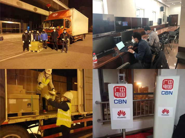一是“急速72小時”推進,在湖北武漢新聞發(fā)布會現(xiàn)場實戰(zhàn)應用700MHz+4.9GHz中國廣電5G,在武漢雷神山醫(yī)院完成中國廣電5G基站安裝調(diào)試,免費為醫(yī)院工作人員及隔離區(qū)病人提供公共Wi-Fi服務(wù)。按照國家廣電總局的工作要求,中國廣電迅速行動、連夜作戰(zhàn),在湖北省委宣傳部、湖北省通信管理局的協(xié)助下,聯(lián)合湖北廣播電視臺、湖北廣電網(wǎng)絡(luò)公司、華為公司等,圍繞服務(wù)抗疫的共同目標,迅速行動,協(xié)同作戰(zhàn),在全民防疫、交通管制的特殊時期,緊急協(xié)調(diào)設(shè)備連夜從北京專車發(fā)往武漢,迅速開始安裝和核心網(wǎng)聯(lián)調(diào)優(yōu)化。自1月29日晚項目建設(shè)啟動,快速完成施工審批、1200公里長途運輸、網(wǎng)絡(luò)規(guī)劃、站點勘測、站點環(huán)境準備、中國有線和湖北廣電傳輸鏈路打通、基站安裝、核心網(wǎng)聯(lián)調(diào)、網(wǎng)絡(luò)優(yōu)化和業(yè)務(wù)調(diào)測等眾多環(huán)節(jié),創(chuàng)造了從北京5G核心網(wǎng)聯(lián)調(diào)到武漢基站開通僅用72小時的神奇速度。中國廣電5G基站在新聞發(fā)布會現(xiàn)場投入實戰(zhàn)應用,完成雷神山醫(yī)院中國廣電5G基站安裝調(diào)試,免費為醫(yī)院建設(shè)者、醫(yī)護人員及隔離區(qū)病人提供公共Wi-Fi服務(wù)。廣電5G在武漢疫區(qū)的開通發(fā)揮積極作用,得到湖北省委的高度肯定。