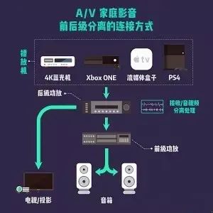 無論是 Hi-Fi,還是 A/V ,兩者的功放都有分前級(jí)功放和后級(jí)功放: