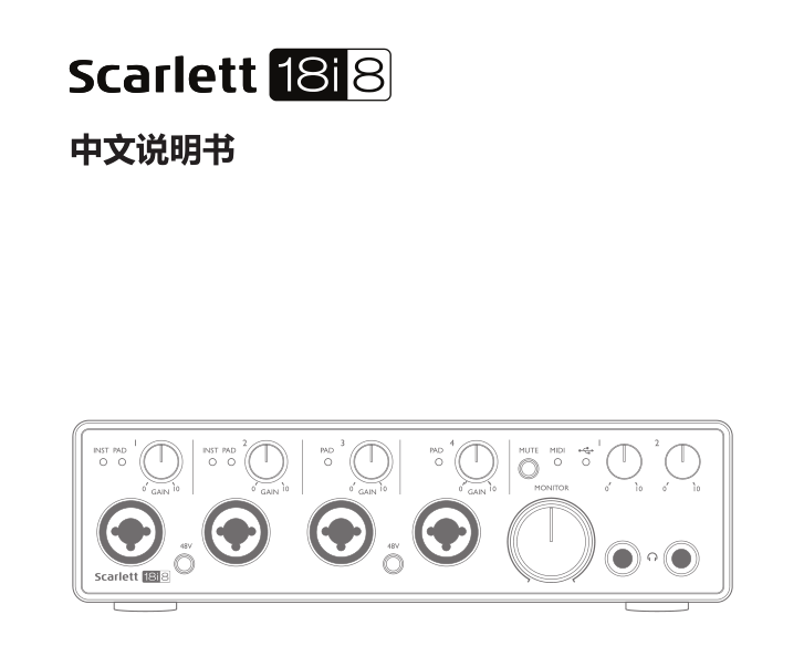 感謝閣下購買第二代Scarlett 18i8。作為Focusrite專業(yè)音頻接口產(chǎn)品的一員,Scarlett 18i8集成了Focusrite高品質(zhì)模擬前置放大器,與配套的Focusrite Control應(yīng)用軟件搭配使用,讓你擁有一套緊湊而且功能強大的高品質(zhì)電腦音頻傳輸方案。你也可以通過Focusrite Control軟件把Scarlett 18i8設(shè)置為獨立音頻接口和其他類型錄音設(shè)備連接使用。