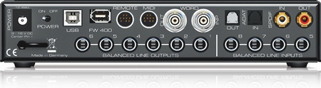 背面,我們從左依次來看,UCX和UC都不能使用USB獨(dú)立供電,都必須接駁電源。左下方的6路平衡式模擬線路輸出能夠滿足您的5.1環(huán)繞聲的制作需求,這沒有任何區(qū)別。左上方,UCX兼有USB2.0和火線400接口,為用戶提供了靈活的選擇性。