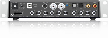 正面的1,2路輸入沒有區(qū)別,都是多用的,既可以插話筒的卡農(nóng)接頭也可以插大三芯作為線路輸入。3,4路輸入既可以插普通大三芯也可以插電吉他電貝司等樂器??瓷先ニ坪鯖]什么特別的,但是重點(diǎn)在于兩個MIC輸入,UCX采用了同UFX相同的話放單元,該單元使用了RME Micstasy的核心技術(shù)(并行轉(zhuǎn)換技術(shù)——每個話放單元采用兩個模數(shù)轉(zhuǎn)換器進(jìn)行并行模數(shù)轉(zhuǎn)換,由此可獲得更佳的信噪比及寬動態(tài)),能夠進(jìn)行65dB的數(shù)字增益控制(1dB為最小調(diào)整單位,較大調(diào)整范圍55dB)。這給UCX帶來了更好的音質(zhì)。