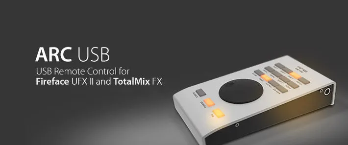 ARC USB是Fireface UFX II一個(gè)USB 1.1 MIDI遠(yuǎn)程控制器。它作為UAC一級(jí)設(shè)備,兼容Windows和Mac OS X。只要出現(xiàn)在操作系統(tǒng)中,TotalMix FX就會(huì)探測(cè)到并通過(guò)簡(jiǎn)單的MIDI遠(yuǎn)程命令與之通信,從而控制UFX II。