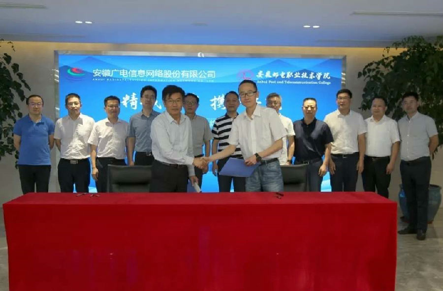 7月23日,安徽廣電網(wǎng)絡公司與安徽郵電職業(yè)技術(shù)學院戰(zhàn)略合作協(xié)議簽訂儀式在安徽通服大樓舉行。公司黨委書記、董事長、總經(jīng)理陳強,副總經(jīng)理李荊生,總經(jīng)理助理杜廣武一行與安徽通服集客部總監(jiān)雷雨、學院院長陳良等參加了簽約儀式。
