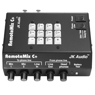 RemoteMix C+集音頻調(diào)音臺、耳機放大器和電話耦合器于一身。適用于遠程廣播、運動會以及各種外景的現(xiàn)場報道。只需將RemoteMix C+連接到一個模擬電話線路上,在連上幾個話筒和耳機,現(xiàn)在你就可以對著電臺說話了。將“電話線路”開關(guān)調(diào)到“撥號/通話”,你會聽到撥號音。這時就可以使用RemoteMix C+的鍵盤撥號了。
