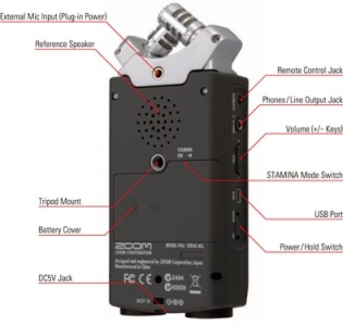 H4n有著比以前更大的LCD屏幕,并內(nèi)置了一個(gè)喇叭可直接回放聲音而不必戴耳機(jī)。