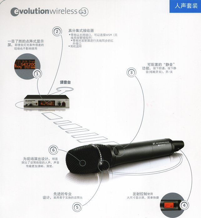 掌控力量:此套系統(tǒng)能確保歌手的聲音脫穎而出,而且話筒上有可編程的靜音按鈕。新增的背光圖形顯示屏,生動(dòng)直觀的菜單導(dǎo)航,全在此專業(yè)無線系統(tǒng)中。一鍵式的發(fā)射機(jī)同頻操作一定讓你愛不釋手。接收機(jī)背板上的以太網(wǎng)接口,讓你可以利用PC運(yùn)行森海塞爾的無線系統(tǒng)管理軟件,遠(yuǎn)程監(jiān)控?zé)o線系統(tǒng)。ew 335 G3 的手持式無線話筒是對(duì)話和訪談節(jié)目的完美選擇。