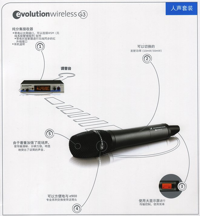 為最好的evolution手持無線發(fā)射機(jī)配上最好的話筒頭。全部500系列手持無線話筒均配有來自成功的森海塞爾evolution 900系列的可更換的話筒頭,這將智能化的G3無線功能與強(qiáng)力透徹的聲音結(jié)合到一起??蛇x購的充電電池可以通過外部充電觸點(diǎn)進(jìn)行充電。G3 無線技術(shù)與evolution 900 系列話筒頭的默契配合確保了您的歌唱以最好的質(zhì)量傳遞給聽眾。