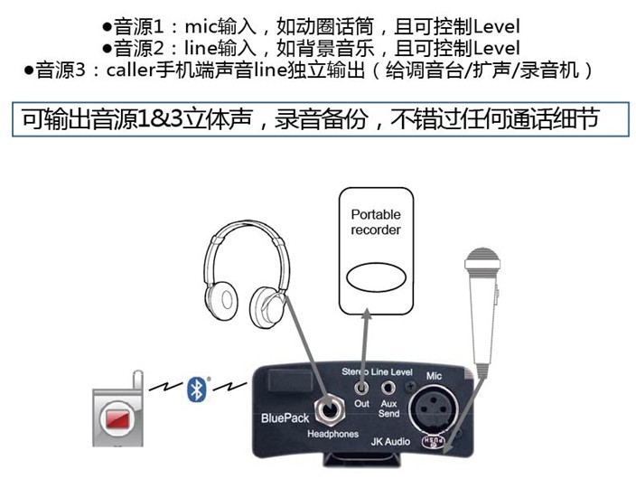 BluePack與您的手機(jī)成對(duì)就如同藍(lán)芽與無(wú)線耳機(jī)成雙。這個(gè)專業(yè)的麥克風(fēng)前置放大器和強(qiáng)大的耳機(jī)放大器,確保您不錯(cuò)過(guò)任何重要的信息。3.5毫米立體聲線路輸入插孔,讓錄音與播放可以做到更好的融合。