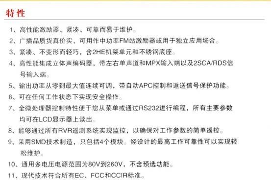 產(chǎn)品簡介:100W 調(diào)頻立體聲激勵器