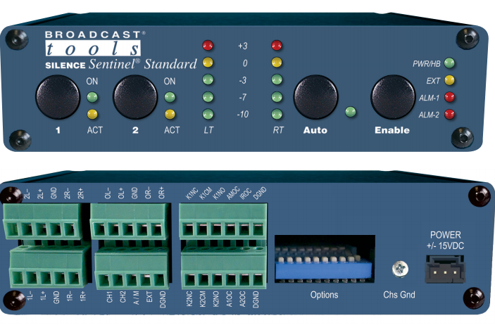 BroadcastTools?SilenceSentinel?Standard旨在監(jiān)視任何兩個立體聲模擬音頻源的靜音或異相狀況,極性,產生警報,并使用機械閉鎖繼電器透明地切換到備用源。 其他功能包括:前面板控件,遙控器輸入和狀態(tài)輸出; 插入式歐規(guī)螺釘端子; 撥碼開關選擇零參考以下-20,-25,-30和-35db的靜音檢測; 精確的警報定時延遲從關閉到85分鐘; 精確的恢復時間延遲從關閉到21分鐘。SilenceSentinel?Standard可以放置在臺式機上,也可以安裝在墻上或可選的RA-1機架擱板上,以在1-RU中最多安裝三個單元。