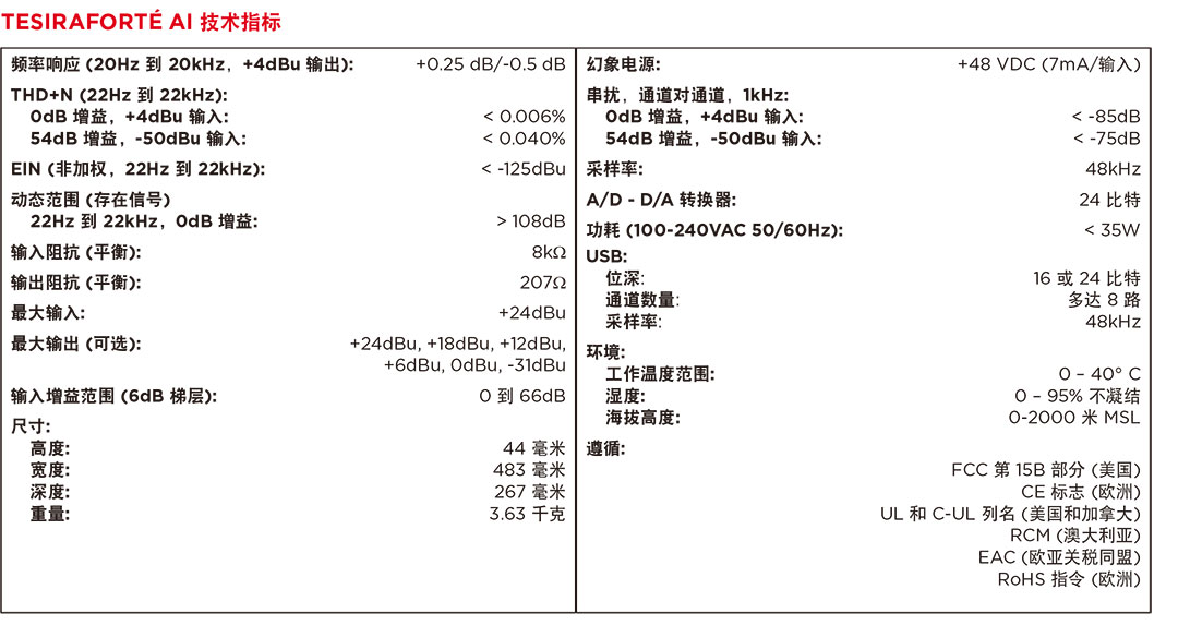TesiraFORTé? AI是一款固定的I/O DSP,配備12路模擬輸入和8路模擬輸出,并包含多達8路可配置USB音頻通道。借助USB音頻,TesiraFORTé直接與USB音頻主機連接,并可充分利用當(dāng)今最先進的會議解決方案。TesiraFORTéAI還提供了廣泛的音頻處理,包括但不限于:信號路由和混音、均衡、濾波、動態(tài)和延遲以及控制、監(jiān)控和診斷工具,均通過Tesira軟件配置。TesiraFORTé AI是中小型房間的最佳選擇,這類房間需要使用語言擴聲和分區(qū)擴聲的高品質(zhì)音頻解決方案(如會議室或理事會會議廳)。