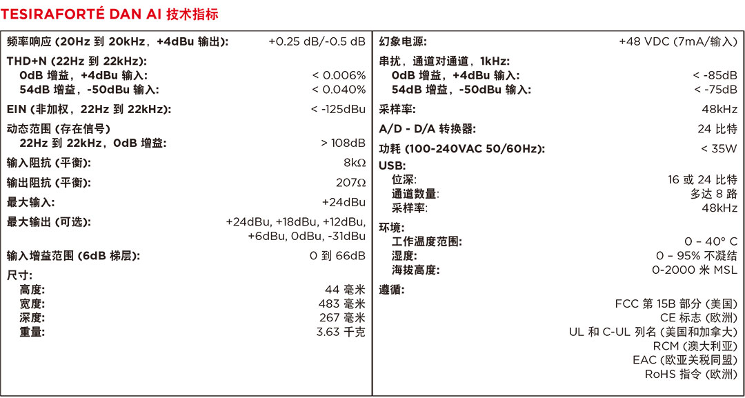?2個(gè)千兆以太網(wǎng)端口:Dante數(shù)字音頻和Tesira控制